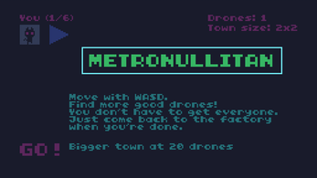 Use the mouse and WASD to click buttons and move. Avoid the police shooting at you, try to transform as many people as possible and return to the factory in a city that changes layout every run. You can also choose from 6 drone forms to use for yourself. The final goal is 500 drones, which awards you with a little victory lap possibility and lets you reset the game.